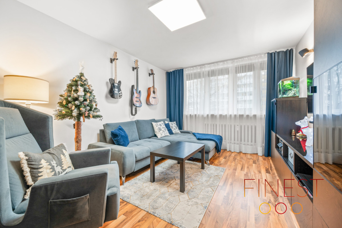 Do sprzedaży mieszkanie o powierzchni 71 m2 składające się pierwotnie z 4 pokoi, kuchni, łazienki z WC i przedpokoju. Aktualnie jeden z pokoi został połączony z kuchnią, dzięki czemu mamy dostęp do funkcjonalnej kuchni z wyspą i wygodnej jadalni. W mieszkaniu również umeblowana komórka lokatorska pełniąca rolę garderoby.