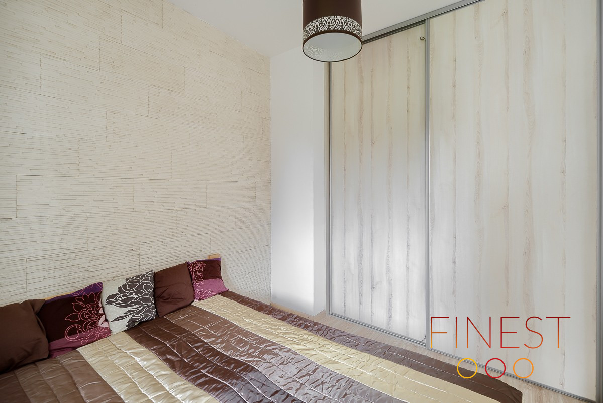 Sypialnia: łóżko podwójne, wnękowa szafa przesuwna